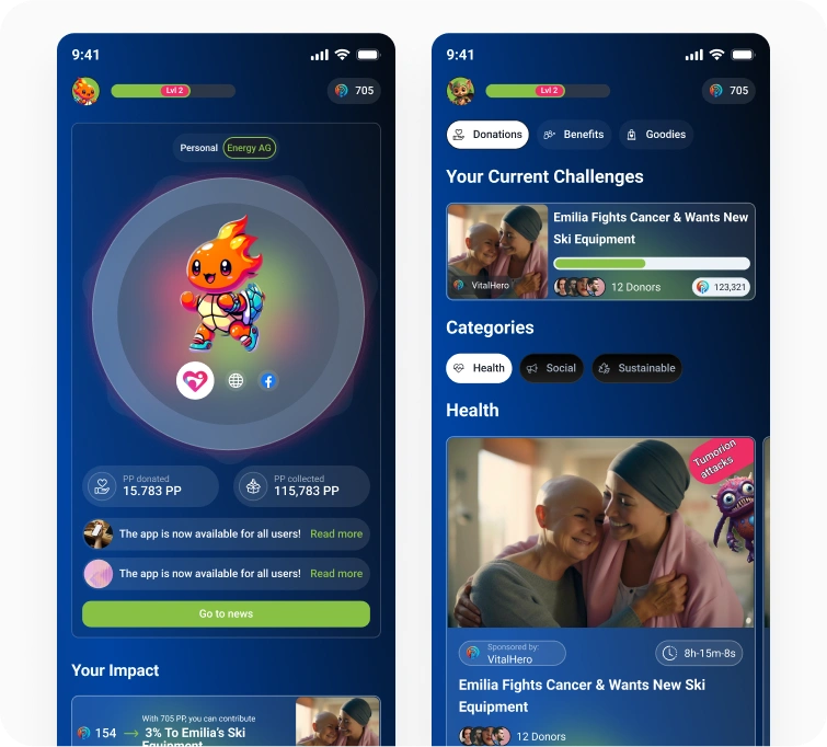 Hashlogics developed VitalHero / GesundheitsHeld.in, a cross-platform AI-powered fitness and wellness app designed to engage users in healthier lifestyles. The app tracks health metrics such as steps, sleep, and exercise while awarding Purpose Points (PP) as motivation. Tailored for both individuals and corporate wellness programs, VitalHero leverages AI to dynamically set personalized daily goals and wellness tasks, driving sustained engagement and improved health outcomes.